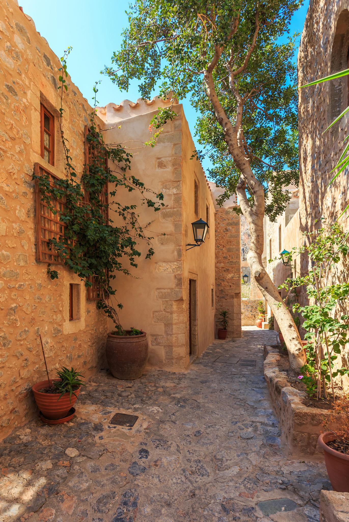 Περνώντας την πύλη του κάστρου, ο επισκέπτης αφήνει πίσω του το σήμερα και ταξιδεύει σε έναν κόσμο βυζαντινής γοητείας. Πέτρινα αρχοντικά, στενά λιθόστρωτα σοκάκια, βουκαμβίλιες που αγκαλιάζουν τις αυλές και εκκλησίες αιώνων δημιουργούν ένα σκηνικό μοναδικό στην Ελλάδα.