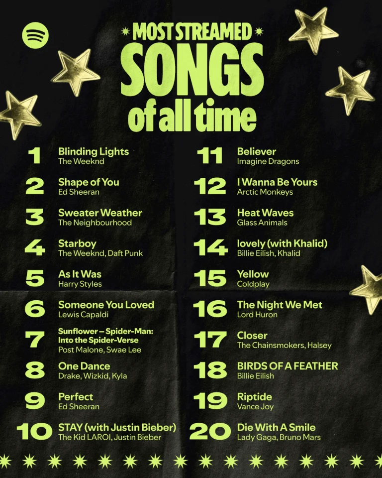 Τα τραγούδια με τα περισσότερα streams στο Spotify
